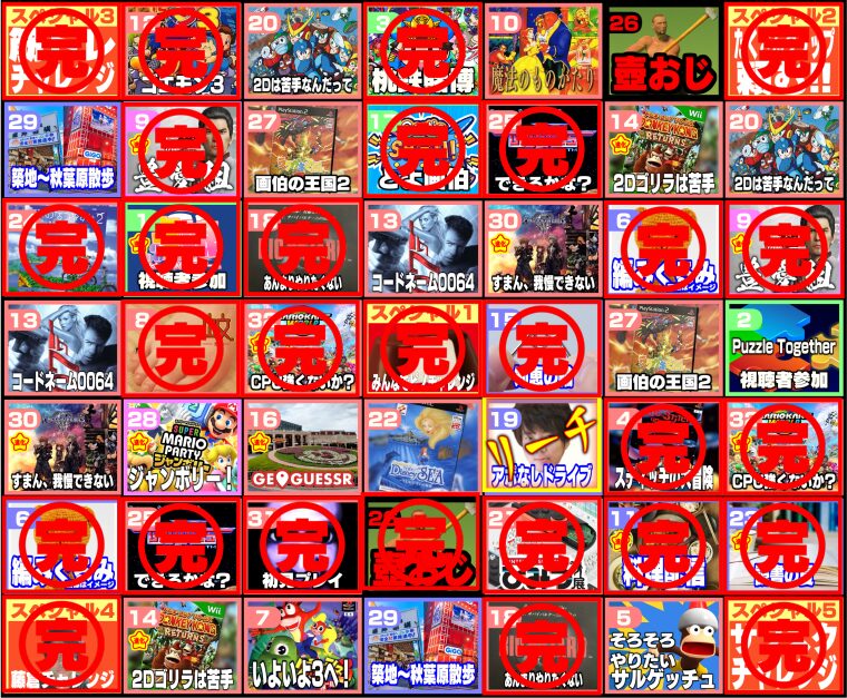 過去のビンゴでは重いマスがありました